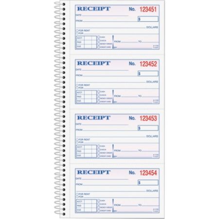 Money Rent Receipt Spiral Book 2 3 4 X 4 3 4 2 Part Carbonless