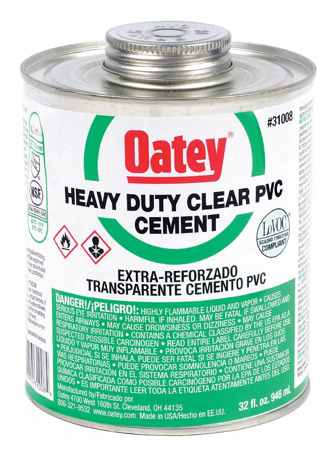 Oatey Clear Pvc Cement Heavy Bodied Size 32 For Use With Pvc